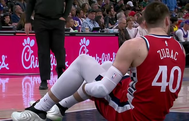 祖巴茨之后一瘸一拐返回更衣室,在受伤下场前,祖巴茨得到5分2篮板1助攻。